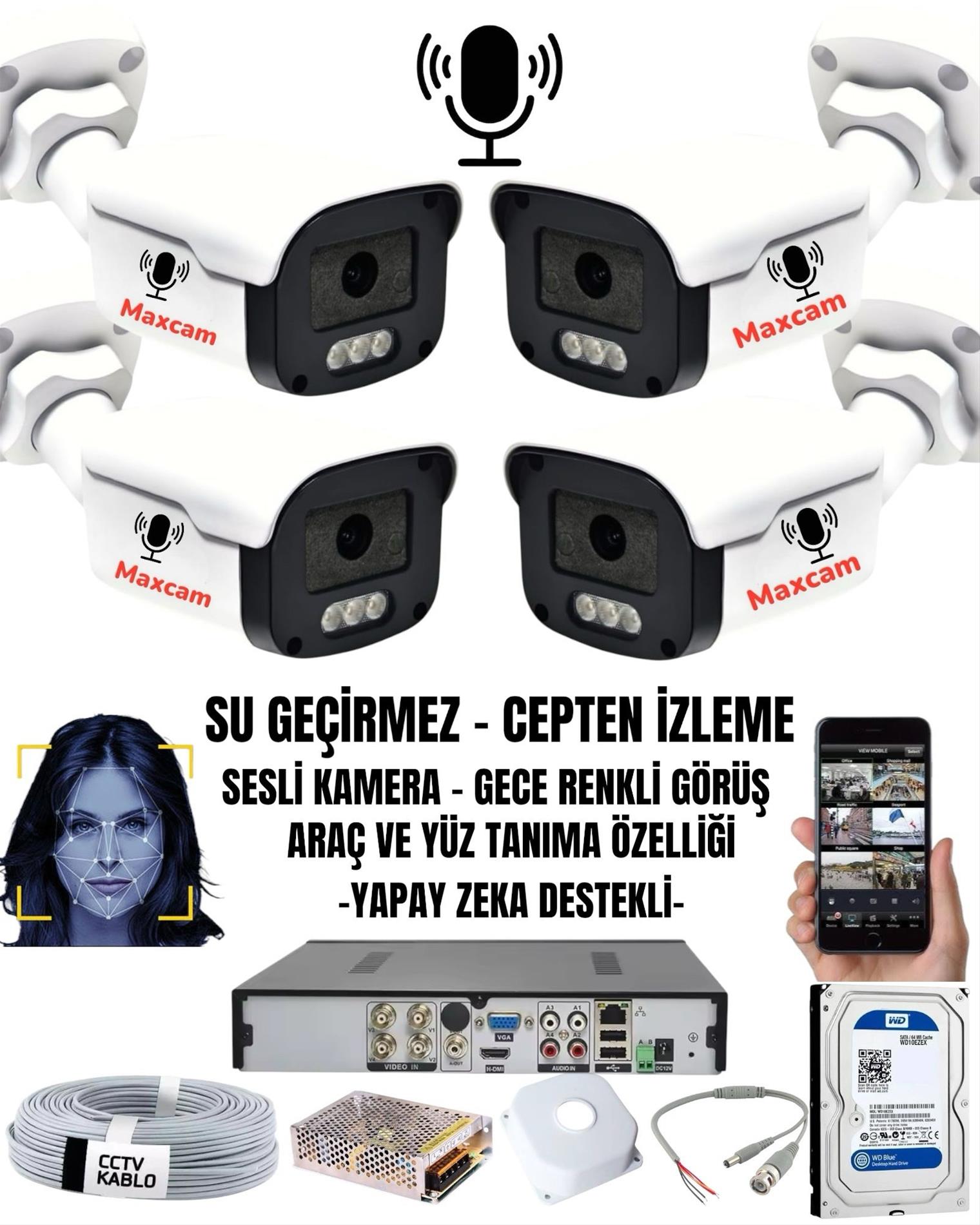 4 Adet Gece Renkli SESLİ İç Ve Dış Mekana Uyumlu 5MP Maxcam Güvenlik Kamerası